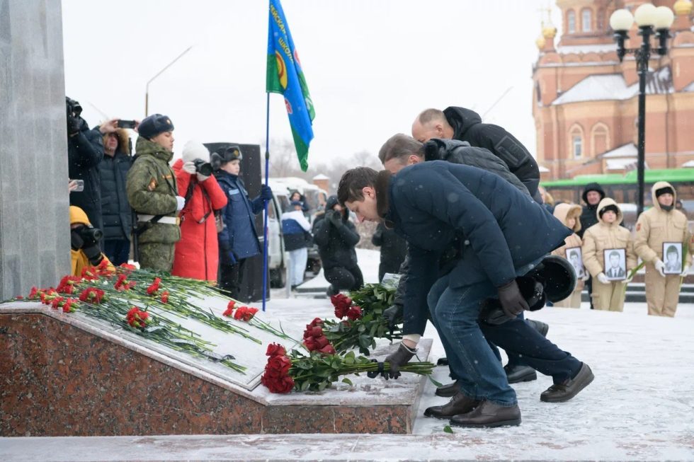К памятнику воинам-интернационалистам несут цветы. Почтить память бойцов пришли первые лица города и области.
