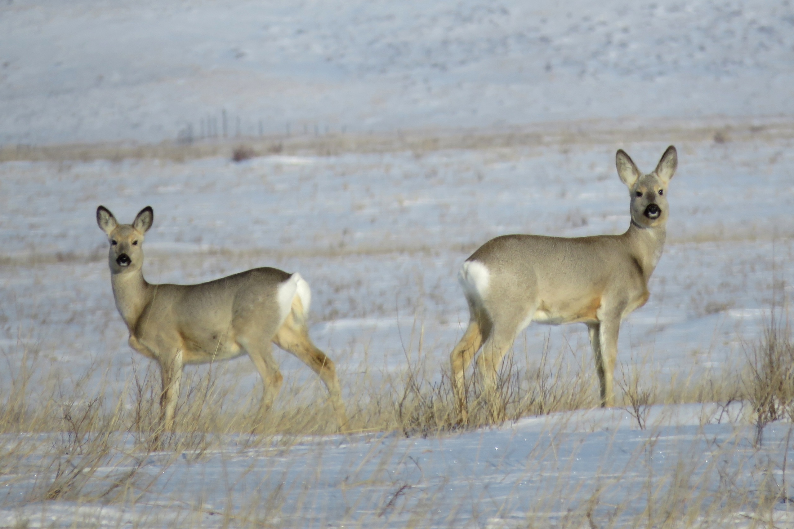 Дмитрий Немальцев отметил, что в бураны косули собираются во все более крупные табунки, а глубоко под землей, теплых норках просыпаются сурки.