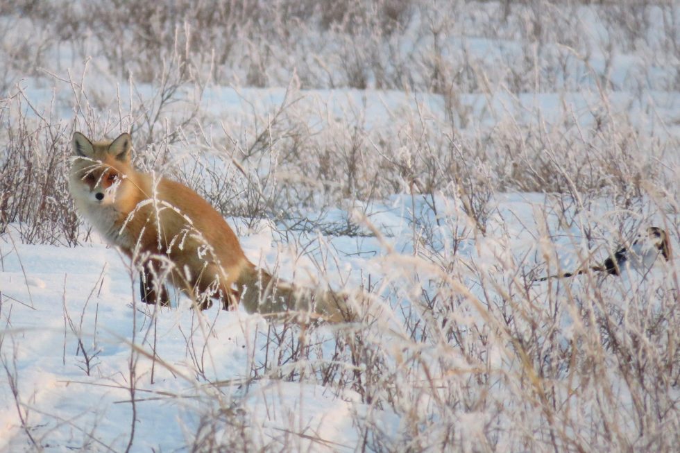 — А у лисиц наступило время свадеб. Носятся по сугробам как угорелые. Наш друг лисовин Нахал стал наведываться в гости на кордон совсем редко. Наверное, сейчас у него другие заботы. Приходит, кстати, один. Подружку, видимо, отбил какой-нибудь более взрослый и опытный в обольщении дам гусар. А около кордона Нахала теперь постоянно встречает и троллит мстительная обиженная сорока. Безумолчно трещит, пикирует, всячески дразнит пёсика. Передразнивает, даже в самые неуместные моменты, — рассказал старший госинспектор.