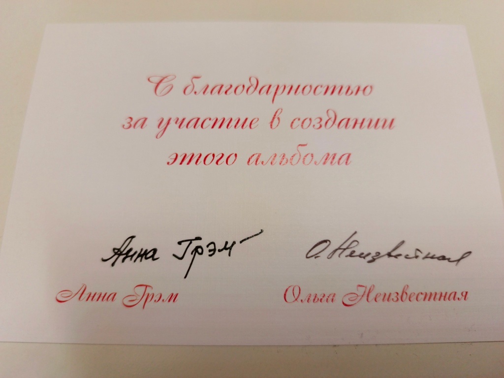 Фонд «Евразия» уже начал передачу юбилейного альбома организациям и частным лицам, которые внесли вклад в его создание. МДЦ «Артек» стал второй организацией в мире, получивший именной экземпляр альбома с благодарностью за содействие, подписанной дочерью скульптора Ольгой Неизвестной, живущей в Москве, и вдовой Анной Грэм из Нью-Йорка.