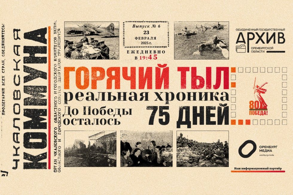 Проект «Горячий тыл: реальная хроника» подготовлен архивной службой Оренбургской области и посвящен 80-летию Победы в Великой Отечественной войне. Оренбург Медиа — информационный партнер проекта.