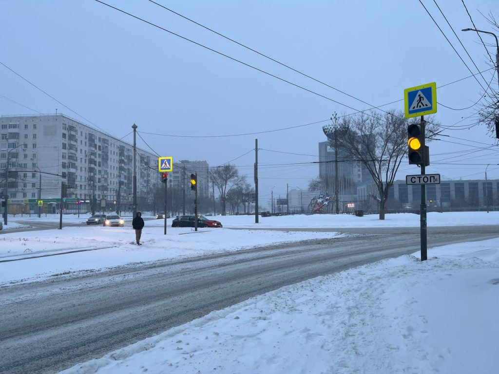 До этого снегопадов в Оренбурге не было почти месяц. Из-за нескольких дней с «плюсовыми» температурами и сильного ветра снега местами и вовсе не стало: под ногами — гололед, асфальт или земля.