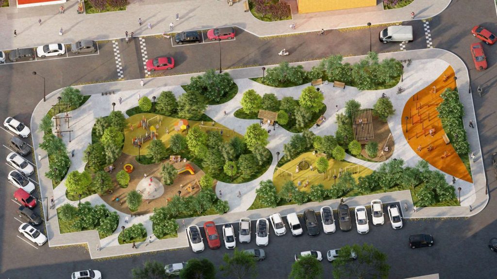 Важный элемент благоустройства – концепция «закрытого двора» и комплексное тематическое озеленение. В проекте — игровые площадки для детей разного возраста, зона спортивной активности, предусмотрена и зона отдыха с комфортными скамейками. Во дворе будет использоваться световое зонирование – выразительное вечернее освещение и безопасное ночное освещение для удобства жителей. По всем правилам и нормам оборудуют площадку для вывоза мусора.