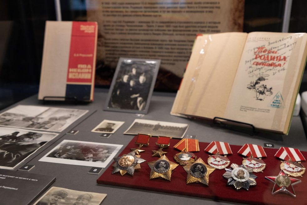 В числе фотоснимков и семейные кадры, на которых Александр Ильич запечатлен с женой и дочерями, семья Родимцевых отмечает 9 мая 1945 года за праздничным столом. Также в витрине представлены две книги, написанные Родимцевым и подаренные им Маршалу Советского Союза Родиону Малиновскому. Выставка будет работать до 23 марта 2025 года.