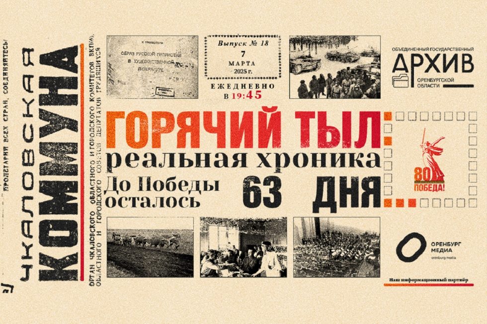 Проект «Горячий тыл: реальная хроника» подготовлен архивной службой Оренбургской области и посвящен 80-летию Победы в Великой Отечественной войне. Оренбург Медиа — информационный партнер проекта.