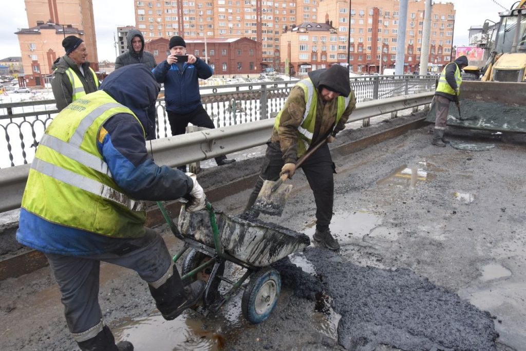 Главная > Новости > В Оренбурге латают ямы на автомобильном мосту через Урал