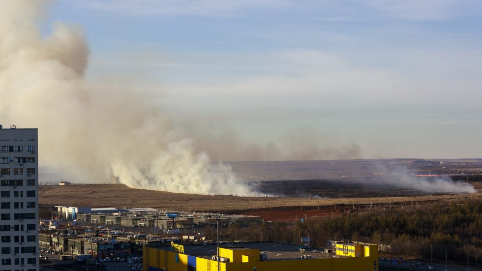 В Оренбурге между Загородным шоссе и улицей Тихой начался природный пожар. Там горит сухая трава.