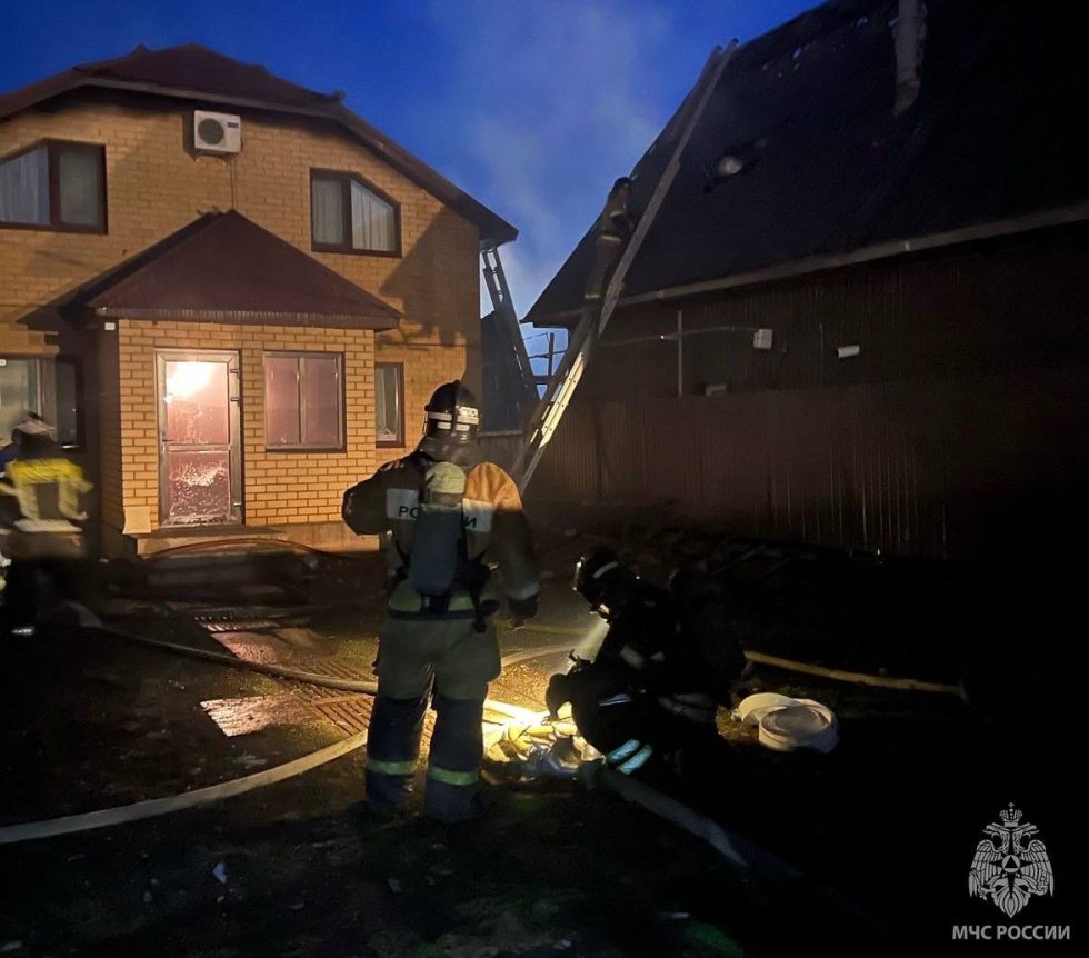 Изначально в жилом квартале загорелась баня. К моменту прибытия пожарных огонь распространился на кровли близлежащих  жилых домов.