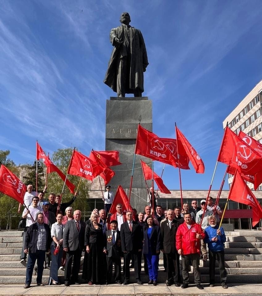 Основателю Советскому государства, мыслителю и революционеру Владимиру Ленину — 155. В день рождения Вождя мирового пролетариата оренбургские коммунисты возложили цветы к памятнику Ленину на одноименной площади.