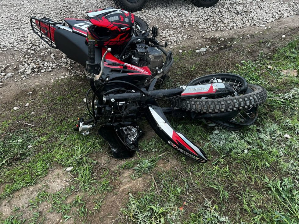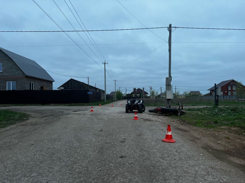 На нерегулируемом перекрёстке улицы Солнечной в СНТ «Радуга» столкнулись питбайк и квадроцикл. Предварительно установлено, что 20-летний водитель питбайка «Осака» нарушил правила проезда равнозначных перекрестков. Он не уступил дорогу квадроциклу «Кайо», которым управлял 11-летний подросток, и протаранил его.