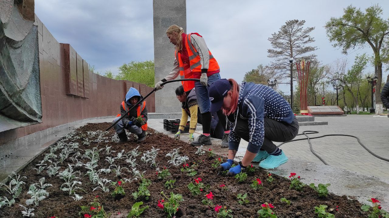 Первыми рассадой заполняют клумбы у мемориалов и памятников, чтобы к празднику они предстали во всей красе. Особое внимание уделяют главным памятным местам.