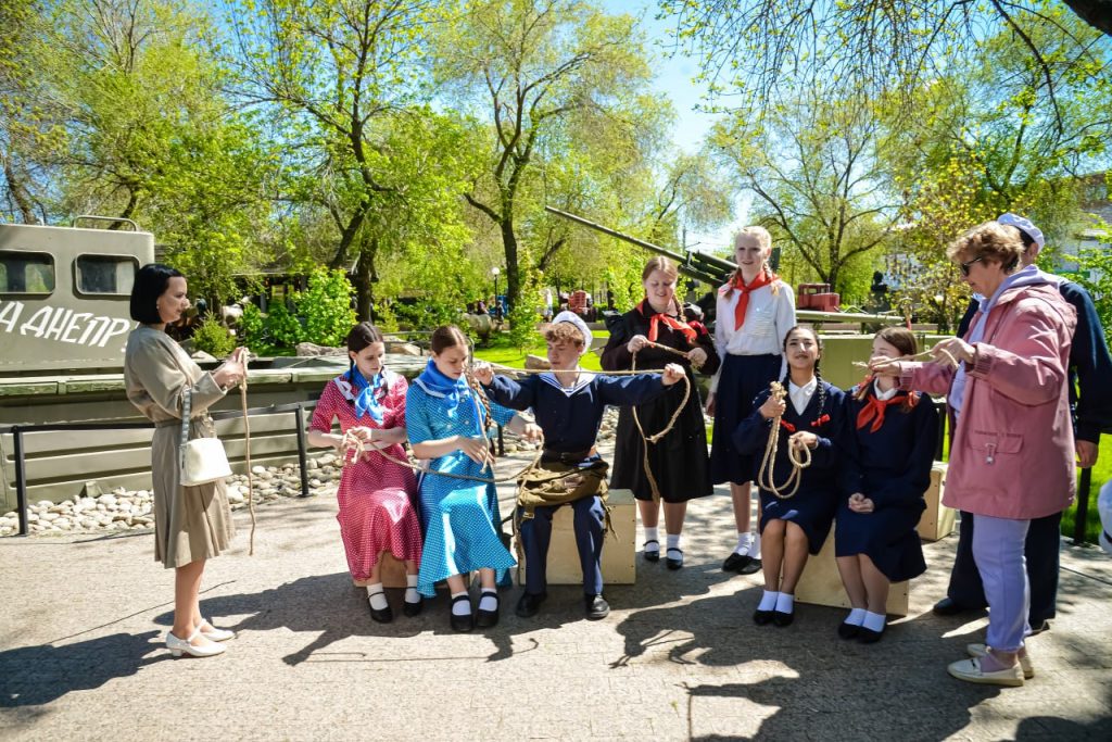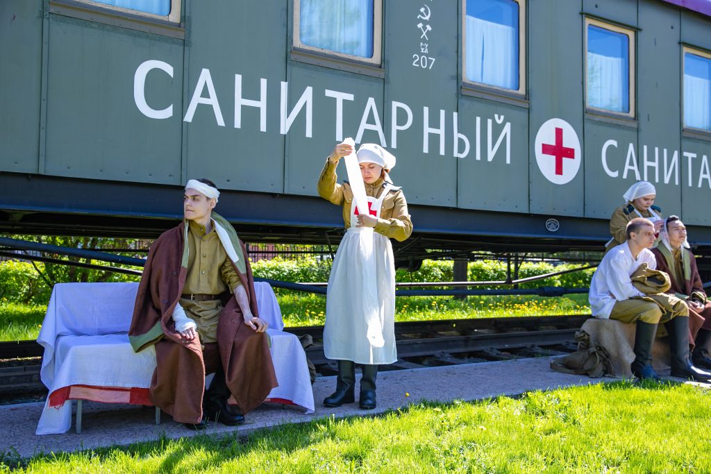 Гости арт-реконструкции, гуляя по парку, могли переходить от локации к локации. На территории комплекса работали десятки тематических площадок, стилизованных под послевоенный город. Возле санитарного вагона развернулся военный госпиталь, где медсестры ухаживали за ранеными бойцами. На летней эстраде работала агидбригада по образу легендарного «Ястребка». С музыкальной программой перед оренбуржцами выступили артисты студенческого театра «Маска», а также солисты Оренбургской областной филармонии Георгий Авдеев и Александр Зазулин. В одной части мемориального парка гости могли увидеть, как снимают кино о войне, в другой – связать настоящий морской узел. Каждая локация – отражение реальной жизни горожан в 40-е годы прошлого столетия.