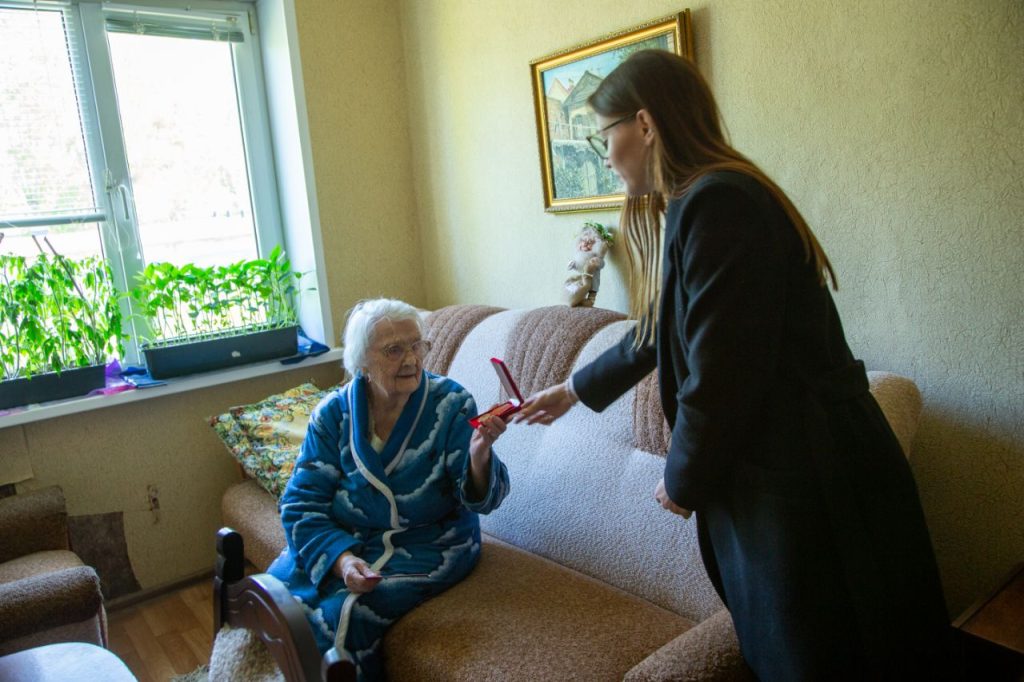 С нетерпением 80-летия Победы ждут и жительницы блокадного Ленинграда Марина Сергеевна Воробейкина, Людмила Николаевна Малина. Вместе с продуктовыми наборами они получили от молодых коллег памятные медали «80 лет Победы в Великой Отечественной войне 1941–1945 гг.»