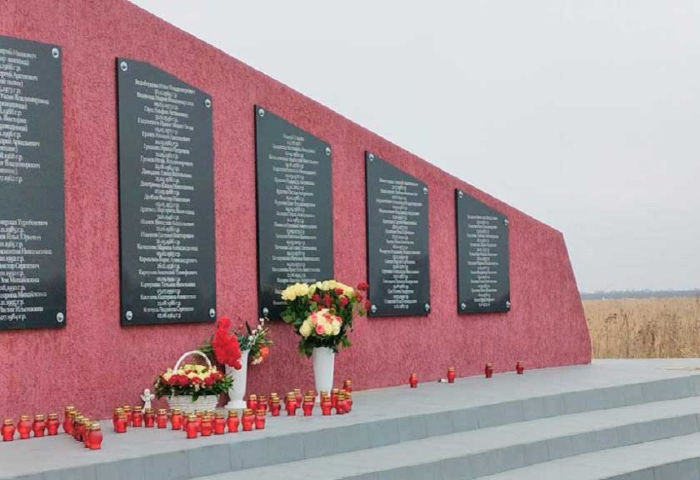 Монумент на месте крушения самолета выполнен в виде крыла. На памятнике разместили таблички со списками пассажиров.
