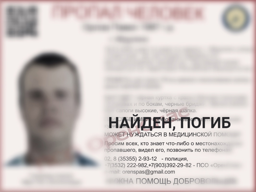 Всех, кто что-либо знает о местонахождении пропавшего или видел его, просят позвонить по телефонам: 02, 8 (35355) 2-93-12 — полиция, +7(3532) 222-982,+7(903)392-29-82 — ПСО «ОренСпас».