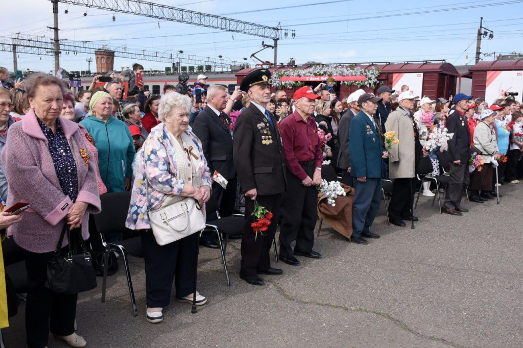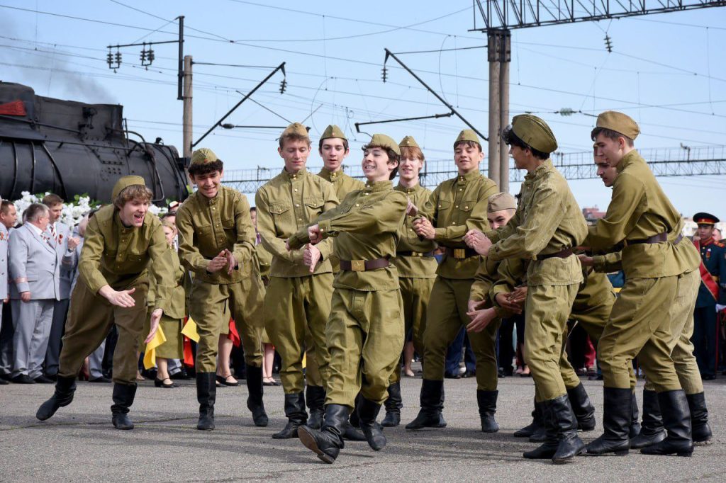 Организаторы события постарались воссоздать атмосферу 1945 года, когда именно так на вокзалах встречали фронтовиков, вернувшихся с Победой. Особое внимание уделили ветеранам и труженикам тыла, которые стали почетными гостями события.