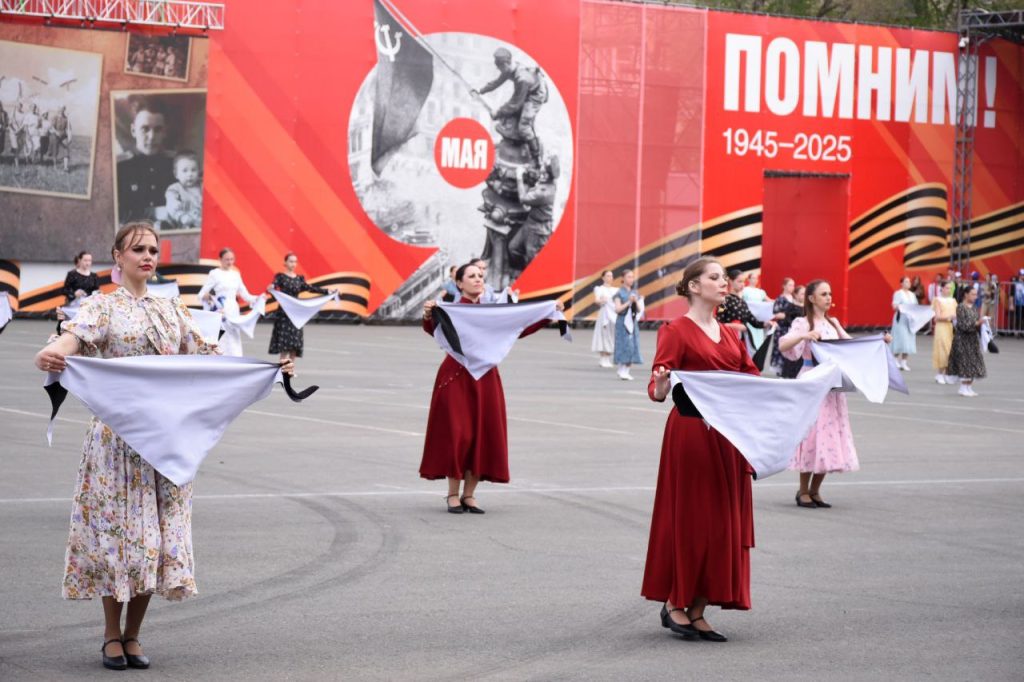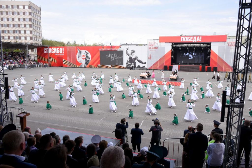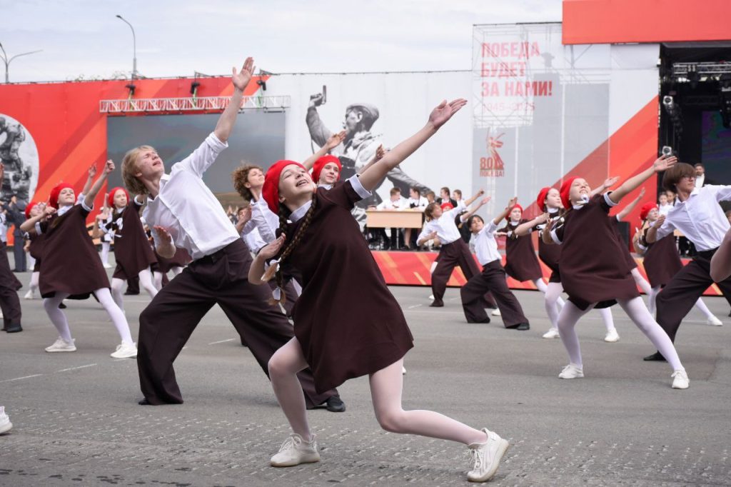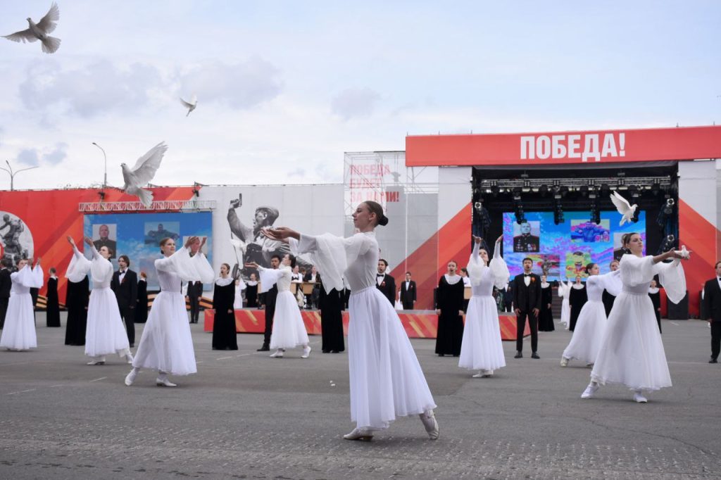 На площади Ленина в Оренбурге после Парада Победы состоялась традиционная театрализованная постановка — концерт под названием «Разговор о важном».