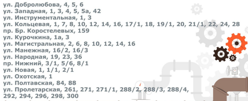Сроки отключения воды могут меняться в зависимости от сложности и объёма работ. Корректировки будут опубликованы на портале ТСС.