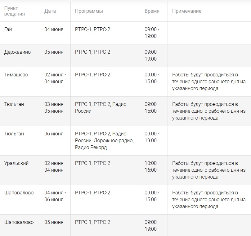 Профилактические и иные плановые работы, требующие отключения телепередатчиков в Оренбургской области, будут проходить со 2 по 8 июня.
