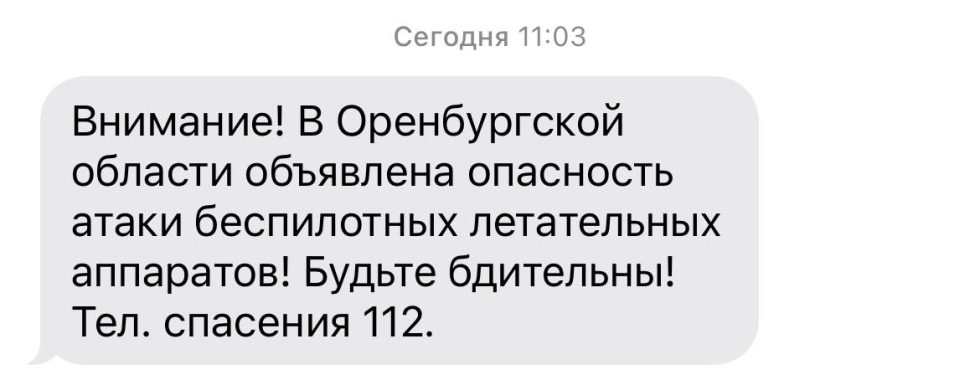 Региональный департамент ПБ и ГЗ разослал жителям Оренбургской области смс-сообщения об угрозе атаки беспилотных летательных аппаратов.