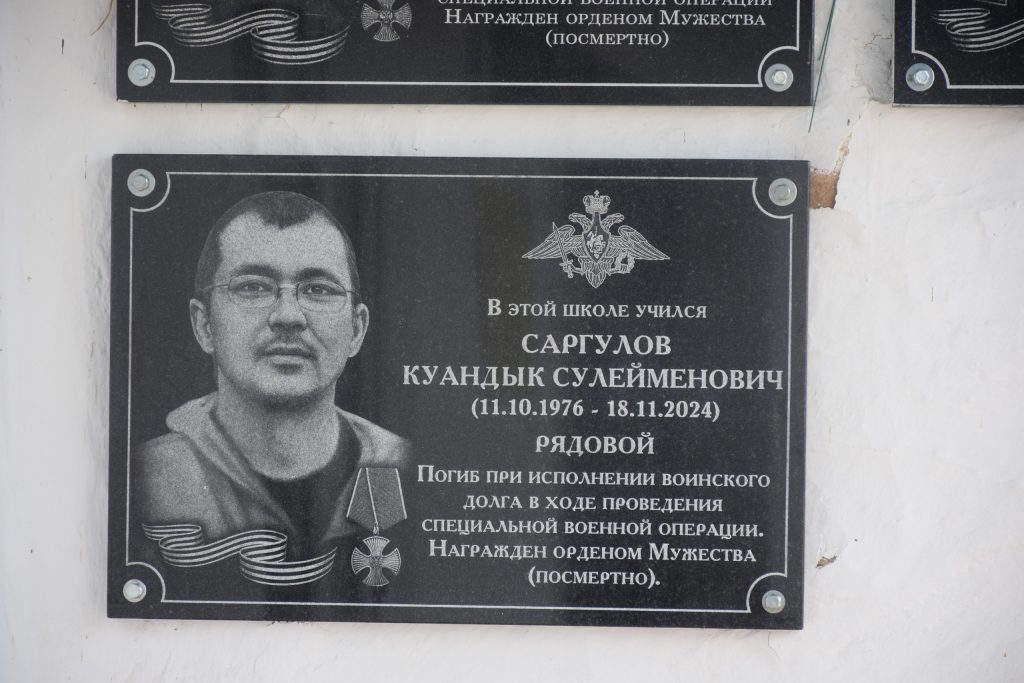 Память еще одного героя – Куандыка Саргулова – увековечили на фасаде Херсоновской школы. В мероприятии приняли участие близкие и жители села.