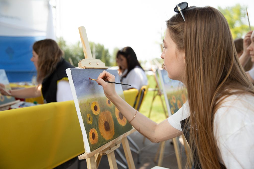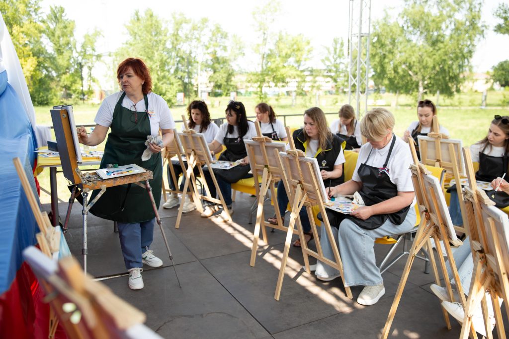 Еще одно мероприятие — мастер-класс по живописи под открытым небом. Участники необычного творческого урока в парке «Нефтяников» смогли выразить свое отношение к Родине с помощью красок. Под руководством сотрудницы «Оренбургнефти», члена Профессионального союза художников Ирины Жалыбиной на холстах они изобразили цветущее поле и буровую вышку – символы нефтяного Оренбуржья.