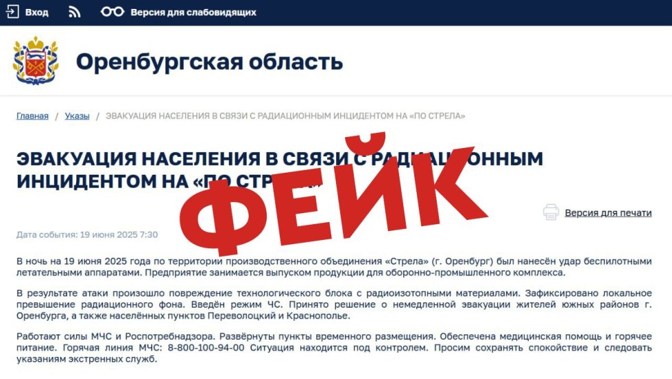 В частности, утром 19 июня появилось сообщение о том, что по предприятию ПО «Стрела» нанесли удар беспилотником. В результате якобы повысился радиационный фон. В связи с этим была объявлена эвакуация населения.