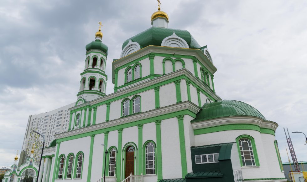 В Оренбурге на Малой земле завершено строительство храма Преподобного Пимена Угрешского — одного из самых масштабных и красивых храмов в регионе. Он вмещает до 2 тысяч верующих, а его купол достигает высоты 45 метров.