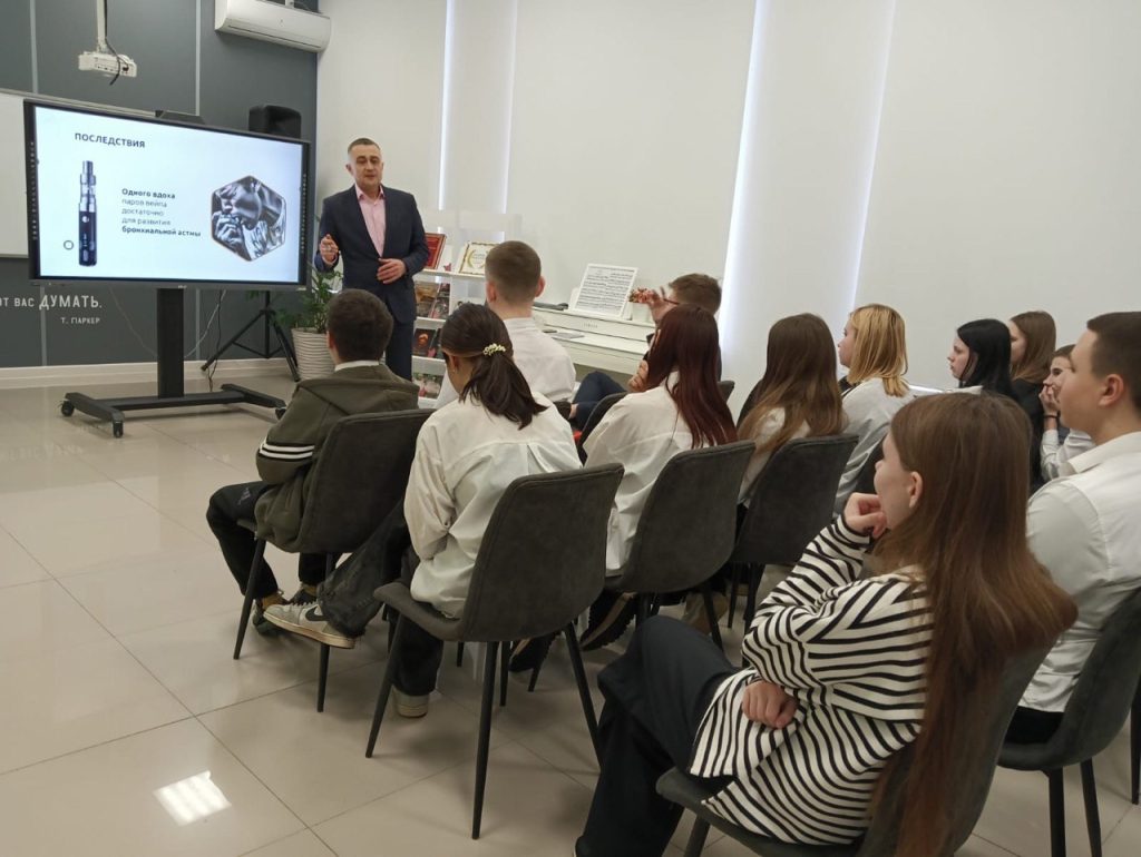 Психиатры-наркологи рассказали ученикам, как вредные привычки влияют на подрастающий организм и о новой болезни вейперов EVALI. После беседы школьникам предлагалось пройти квест-игру в чат-боте в телеграм, в которой школьники должны помочь героям сделать правильный выбор и избавиться от вредных привычек. Эта игра помогает закрепить усвоенный материал и осознать последствия зависимостей.