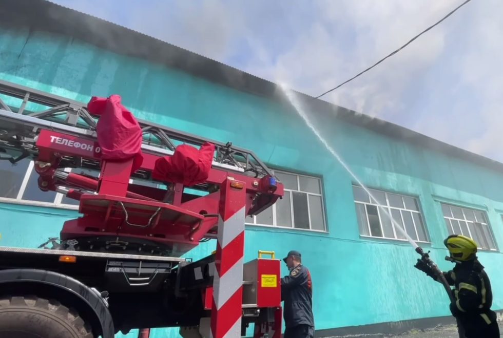 Сейчас на месте пожара работают сотрудники ведомства, тушение горящего производственного здания продолжается.