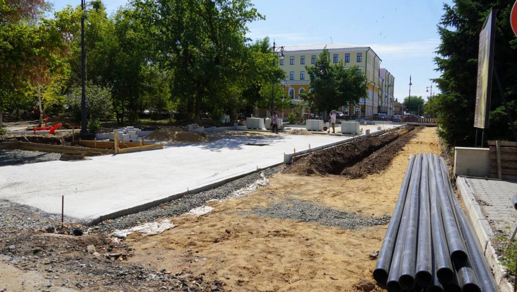 Уже демонтировали старое плиточное покрытие, пешеходные дорожки, начали работы по обустройству нового покрытия. По проекту будут установлены малые архитектурные формы и фонтан, высажены новые деревья, — написал Альберт Юмадилов в своем телеграм-канале.