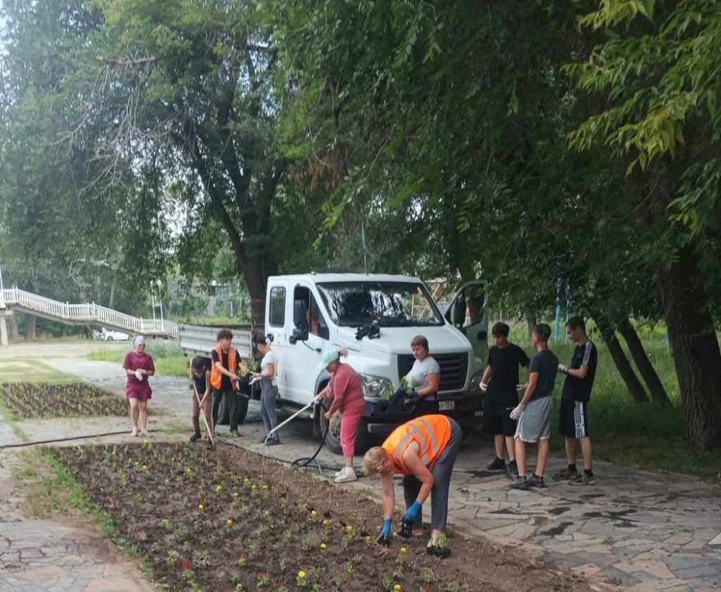На клумбах одного из самых популярных мест отдыха оренбуржцев, на левом берегу Урала посадили яркие пеларгонии и цинии.