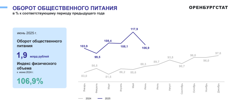 В Оренбургской области оборот общественного питания за первое полугодие вырос в сравнении с 2024 годом.