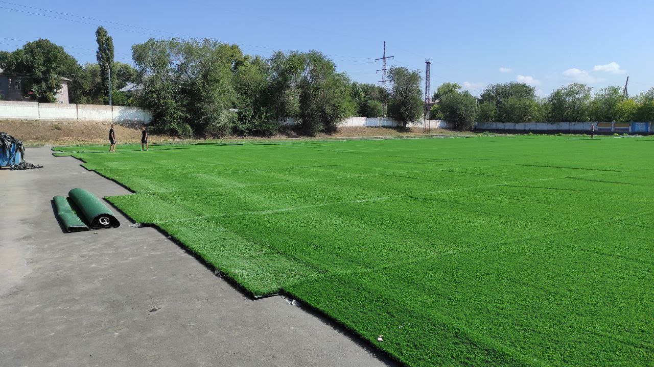На стадионе «Маяк» в Оренбурге завершается укладка искусственного газона в рамках масштабной реконструкции спортивного объекта, начатой в 2023 году по региональному проекту «Спорт — норма жизни».