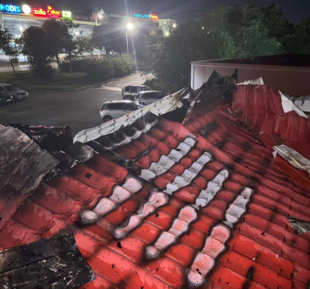 Горела кровля заведения «Стейк Хаус». Огонь распространился на площади в 80 квадратных метров.