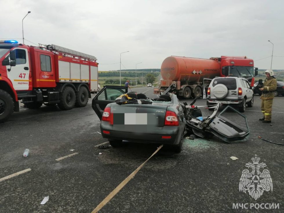 В Абдулинском муниципальном округе Оренбургской области на автодороге Р-239 столкнулись легковой автомобиль и нефтевоз.