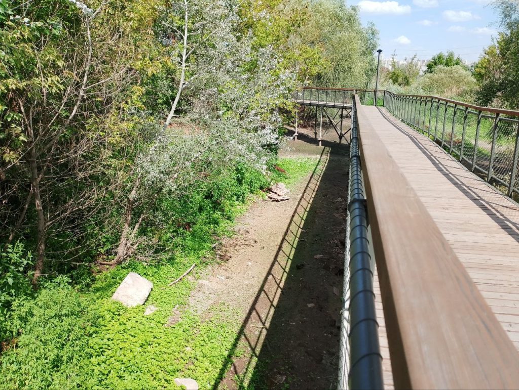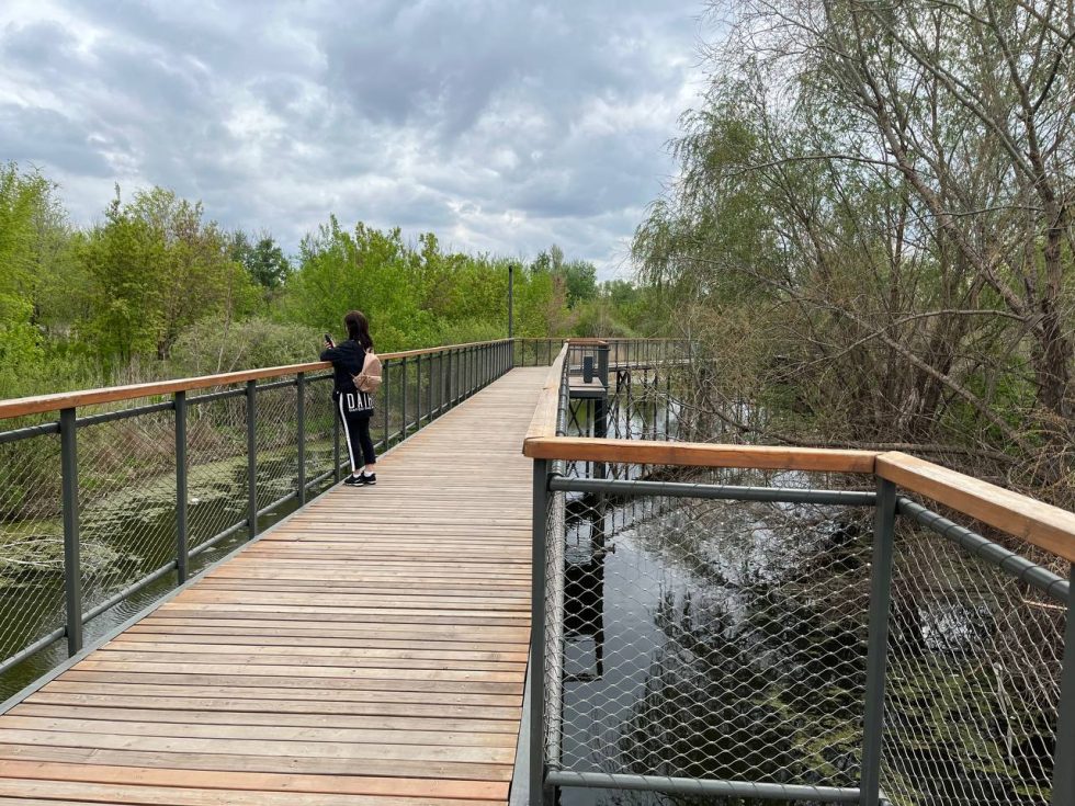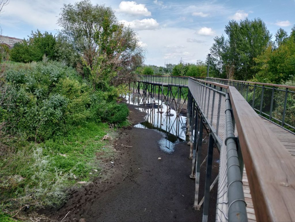 «Тропа здоровья» между улицей Степана Разина и началом восточной части набережной в Оренбурге стала одной из самых популярных локаций для прогулок. Изначально ее построили над участком поймы. После паводка под тропой появился водоем, где живут утки и ондатры.