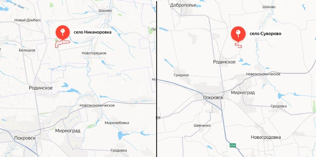 Оба поселка находятся севернее Покровска и Мирнограда. Наступление российской армии в ДНР на покровском направлении продолжается.