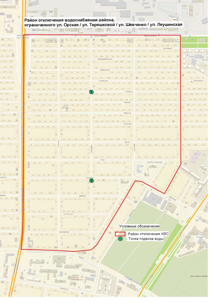 Так, с 10 часов 21 августа до 6 часов 22 августа отключат холодное водоснабжение в районе, ограниченном улицами: Орская — Терешковой — Шевченко — Леушинская. Причина – ремонтные работы.