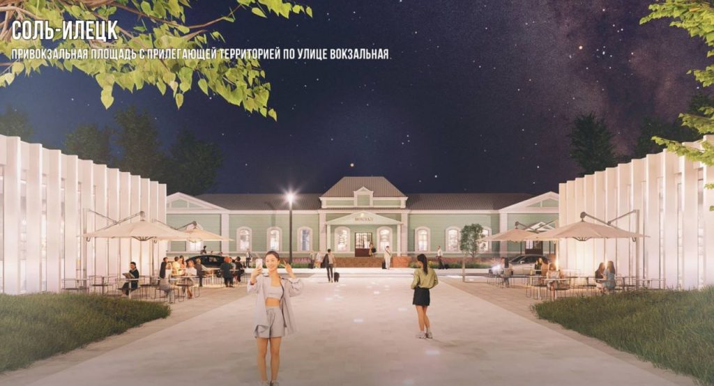 На Привокзальной площади Соль-Илецка появятся зоны общепита, уютные зоны для отдыха, амфитеатр и удобные дорожки с озеленением. Визуально концепция отражает историю степного города, прошедшего путь от солевозного пункта до арбузной столицы России.