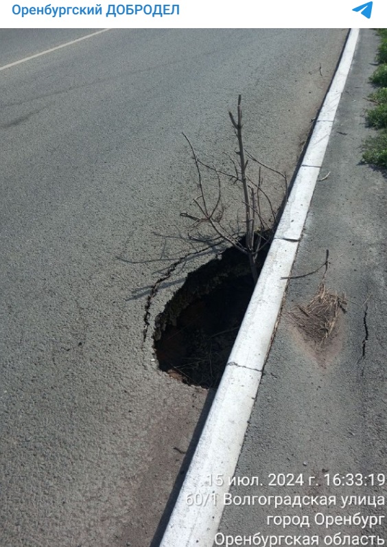 Фото и видео с места происшествия прислали подписчики «Оренбург Медиа». Очевидцы сообщают, что провал глубокий и размером практически в полосу движения. По счастливой случайности, туда не попал автомобиль.