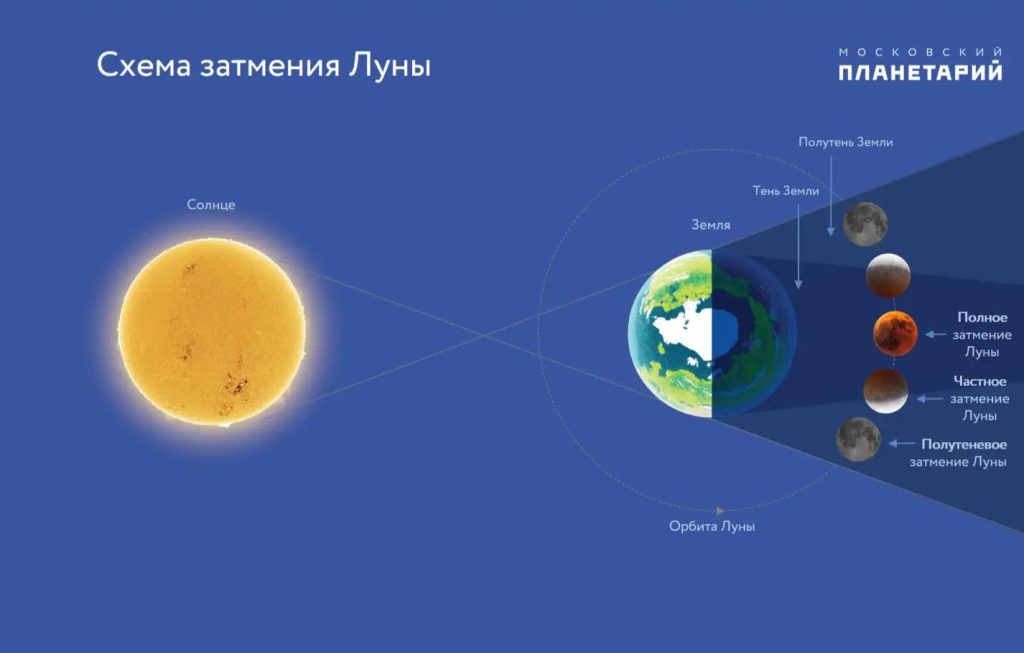 Оно начнётся в 18:28 МСК и завершится в 23:55 МСК. Общая продолжительность — 5 часов 27 минут. Самая зрелищная часть — фаза «кровавой Луны», когда Луна приобретает тёмно-красный оттенок.