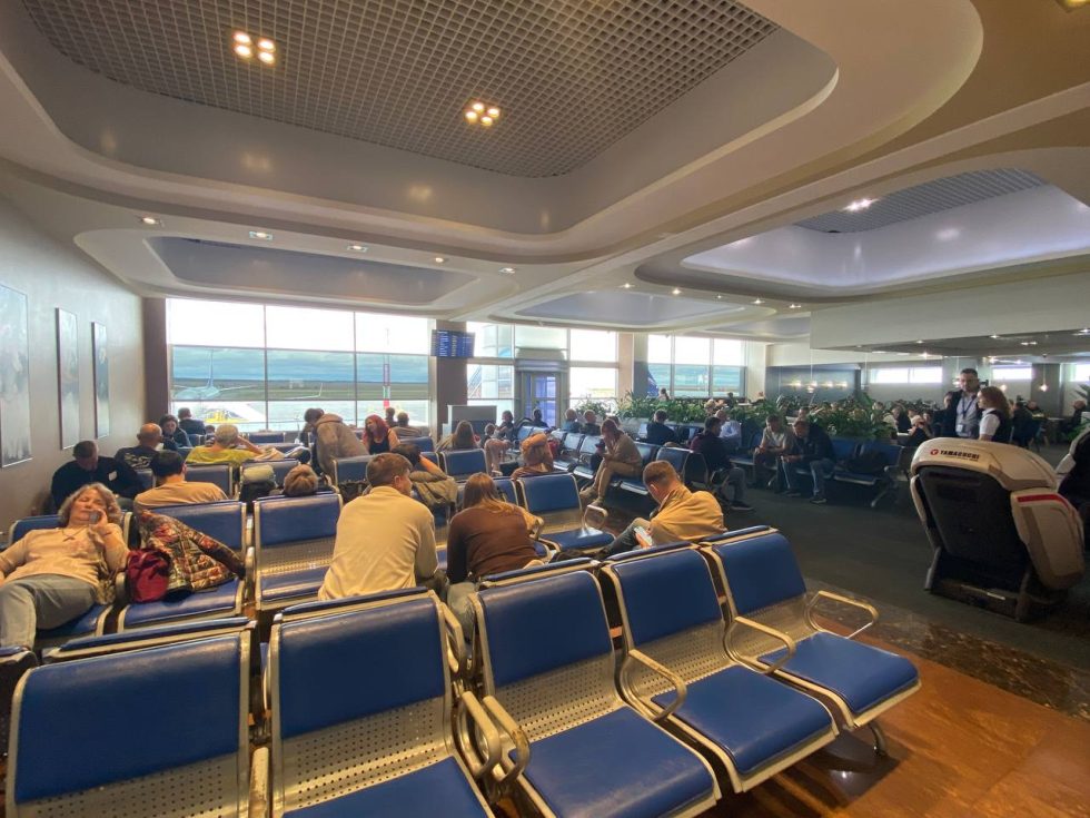 С пассажирами в аэропорту работают сотрудники аэропорта и представители авиакомпаний. Ожидающих вылетов просят уточнять статус рейса на сайте аэропорта и в авиакомпании.