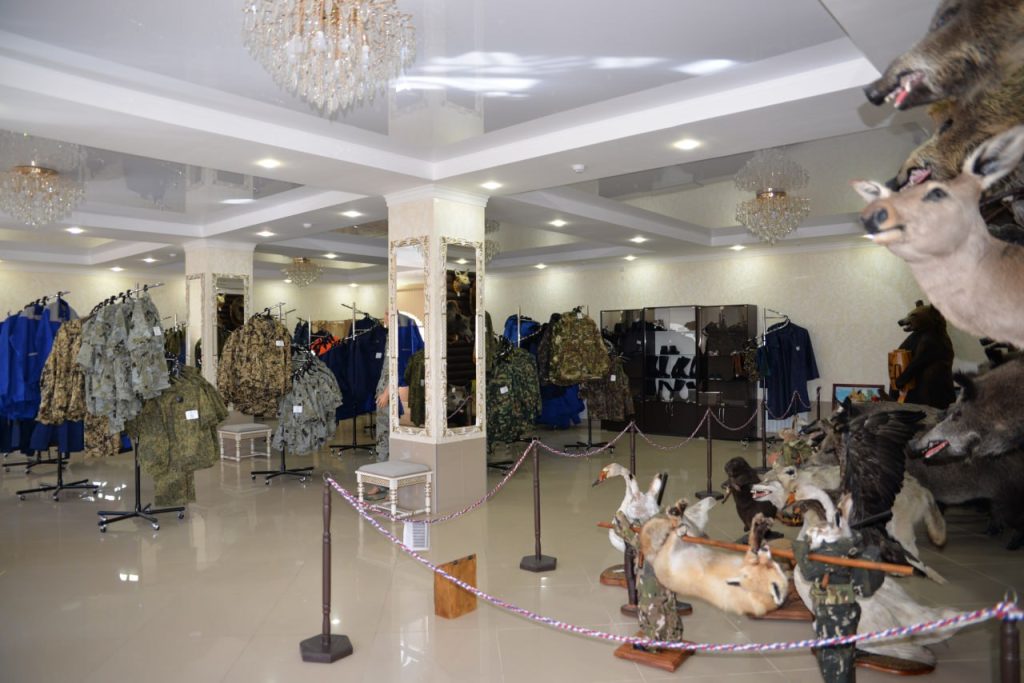 Сейчас в магазине работают два зала. Там можно приобрести спецодежду, форму, постельные принадлежности, мангалы, мебель, чучела животных, картины, шкатулки, а также продукты питания от колбасы до сгущенки. Отдыхающие чаще всего покупают в качестве сувениров фигурки из хлеба, шахматы и нарды.