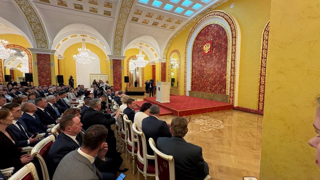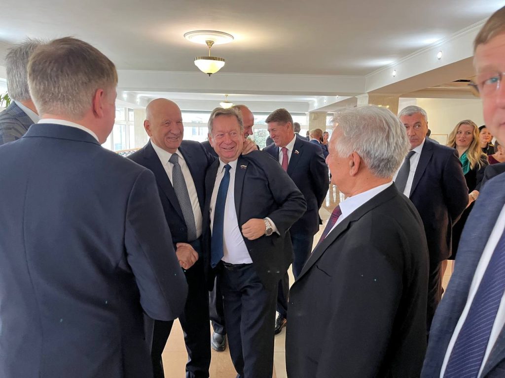 Гости начали собираться за час до начала. Глава региона и Полпред по традиции ждали начала в Доме Советов, остальные участники сразу прибыли в соседнее здание Агропрома, где расположен Золотой зал.