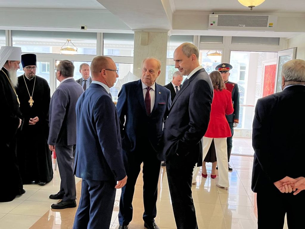 В этом году приглашения на церемонию получили четыре экс-губернатора: Владимир Елагин, Алексей Чернышев, Юрий Берг и Денис Паслер. У последнего инаугурация прошла накануне — в Екатеринбурге. Все четверо сегодня были в зале. На церемонию также прибыл Полпред Президента в ПФО Игорь Комаров.