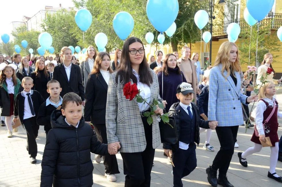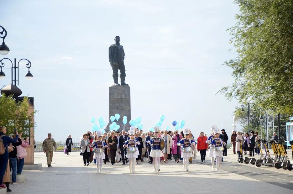 К шествию присоединились представители мэрии, областного минкульта, первоклассники и опытные педагоги. Вместе с молодыми специалистами они прошлись от памятника Чкалову до памятника Первой учительнице, где состоялась торжественная линейка и возложение цветов.