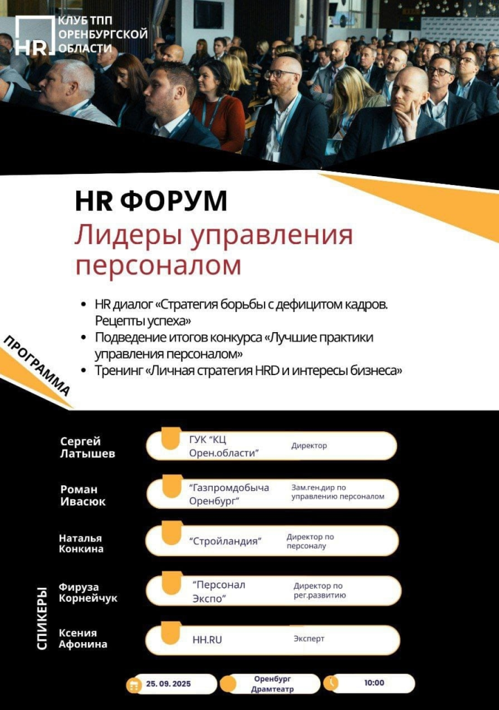 На конференции также подведут итоги конкурса «Лучшие практики управления персоналом». Бизнес-тренер Елена Кузьмина проведет тренинг «Личная стратегия HRD и интересы бизнеса». Организатором конференции выступил HR-клуб Торгово-промышленной палаты Оренбургской области — площадка, давно зарекомендовавшая себя как точка обмена опытом в сложном кадровом вопросе.