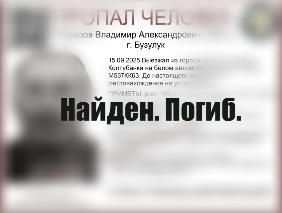 Мужчина 1939 года рождения пропал 15 сентября 2025 года. По оперативным данным, он выезжал из Бузулук в направлении посёлка Колтубановский на автомобиле ВАЗ 2107 белого цвета госномер М537КК63. До настоящего времени местонахождение Владимира Подрезова не установлено.
