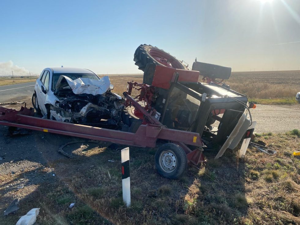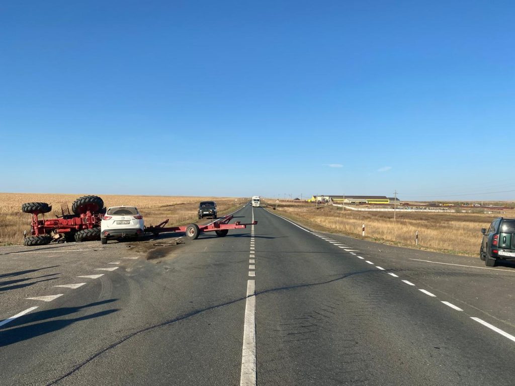 От удара транспортные средства развернуло на дороге. Иномарка и трактор получили серьезные механические повреждения.